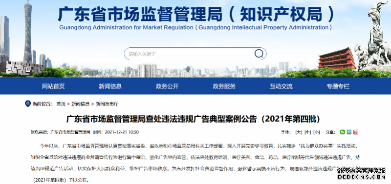廣東省市場(chǎng)監(jiān)管局官網(wǎng)截圖