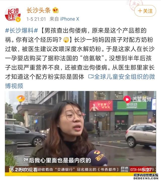 沒想到這事還沒有完,到了2020年1月份,長沙一個家長的孩子過敏,醫(yī)生建議喝深度水解配方奶粉,而家長也到母嬰店買了一款店員說是法國進口的“倍氨敏”結果孩子喝了半年再去體檢發(fā)現(xiàn)孩子得了佝僂病。
