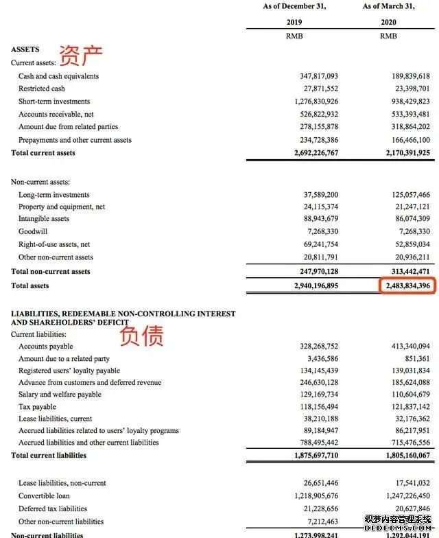 一季報顯示,截至3月31日趣頭條總資產(chǎn)為24.84億元,總負債為30.97億元,凈資產(chǎn)為負6億元,上一季度期末則是負2億元。如果進一步扣掉5億元可贖回的非控制股東權益(redeemable non-controllinginterests),目前趣頭條的股東所有者權益為負11億元。