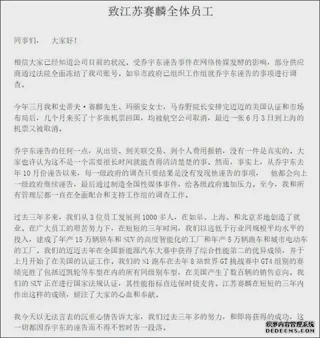???恩訊輿情處理:6月23日,網(wǎng)上曝出江蘇賽麟汽車(chē)科技有限公司上海分公司,已被江蘇省南通市中級(jí)人民法院查封——賽麟汽車(chē)恐怕正式“涼涼”了。