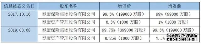 公開(kāi)信息顯示,泰康在線成立于2015年11月,是泰康集團(tuán)全資設(shè)立的互聯(lián)網(wǎng)保險(xiǎn)公司,初始注冊(cè)資本為10億元。2017年10月和2019年8月,公司股東泰康集團(tuán)先后兩次以貨幣方式向泰康在線增資,增資完成后,泰康在線注冊(cè)資本由初始10億元增加至40億元。而增資的主要原因便是提高償付能力充足率。